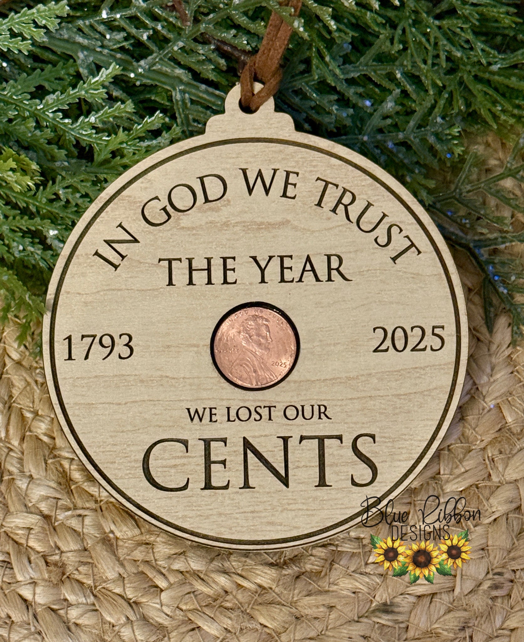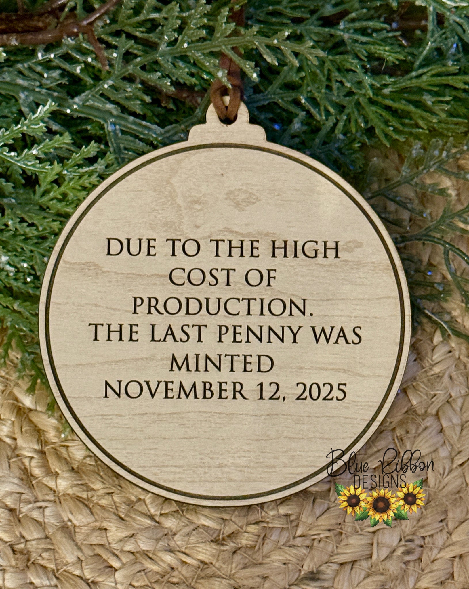Memorialize the end of the penny with this ornament. NOTE: penny years will vary depending on availability.
